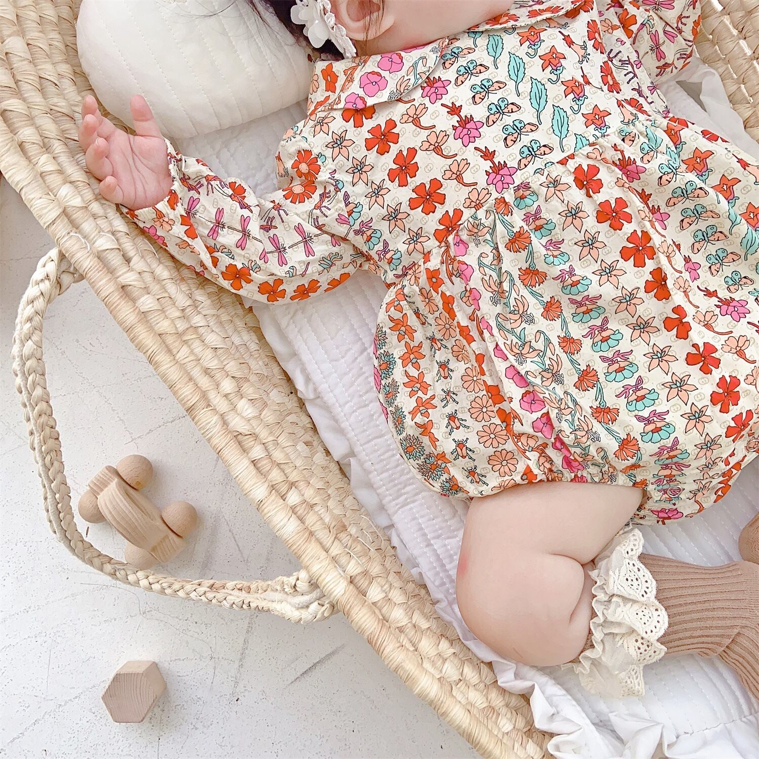 スプリングカラーロンパース オールインワン ワンピースFlowerデザイン エスニックスタイル ロング 春物 フラワーデザイン 超面白いベビーショップ60472152504