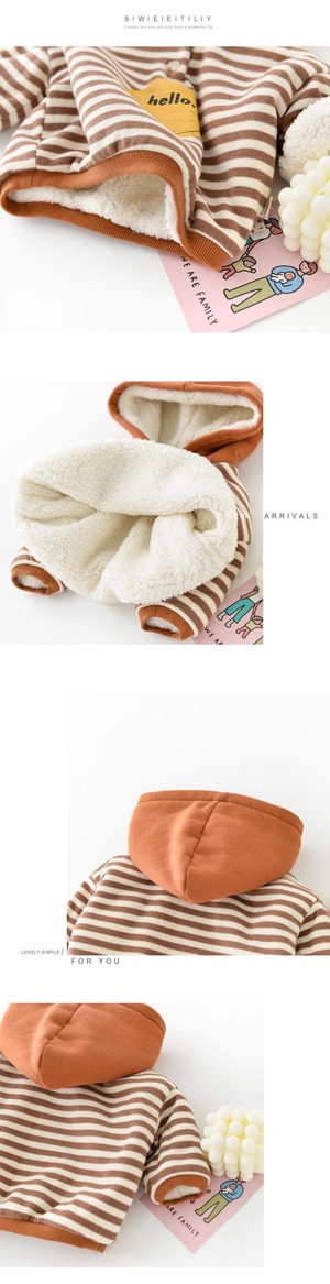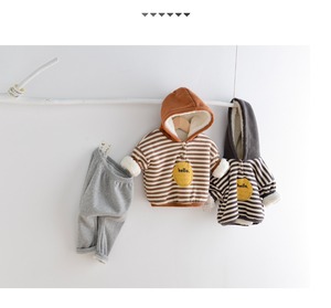 オータムウィンターストライプベルベットフードセーター 秋物 冬物 超面白いベビーショップ23091072506