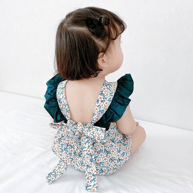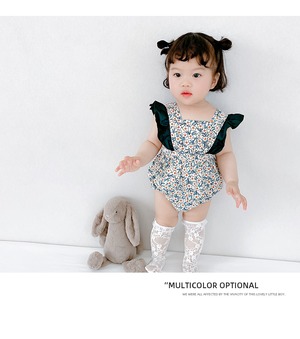 フローラルカラーストラップ トライアングルロンパース オールインワン コットン 花柄 超面白いベビーショップ64671094915