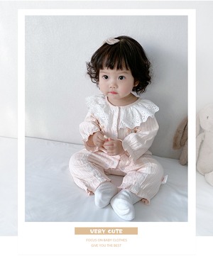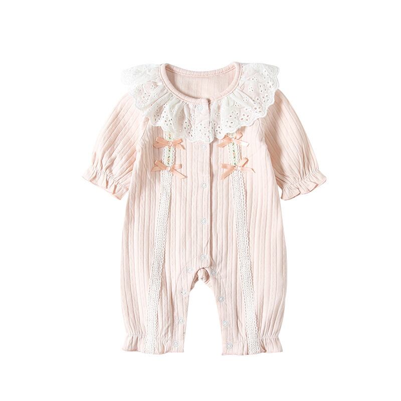 スプリングレースロンパース オールインワン スタイルジャンプスーツ オールインワン リボン 大人ガーリー スウィート キュート カジュアル 春物 超面白いベビーショップ83780114501
