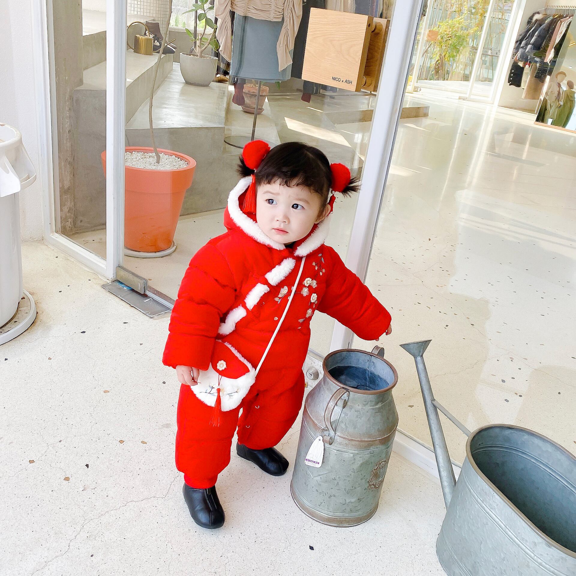 スタイルウィンター刺繍ベルベットロング コットン 冬物 フラワーデザイン 超面白いベビーショップ70800283305