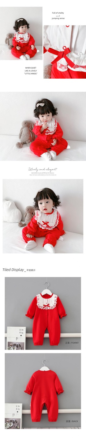 スプリングドレス レースジャンプスーツ オールインワン ロンパース オールインワン レッド 春物 超面白いベビーショップ84432754163