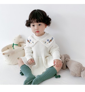 スプリングオータムニットスカート ドレス セーター レッド 刺繍 春物 秋物 超面白いベビーショップ71705547777