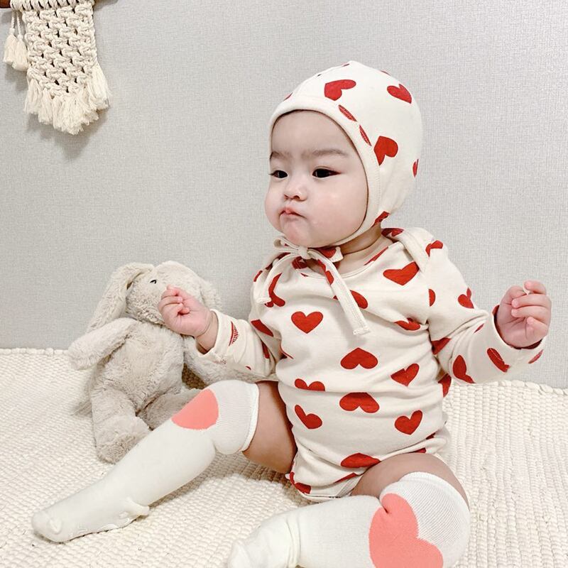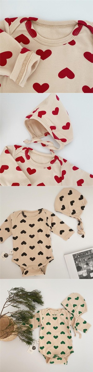 ハートスプリングトライアングルロンパース オールインワン 帽子 春物 超面白いベビーショップ84149793487