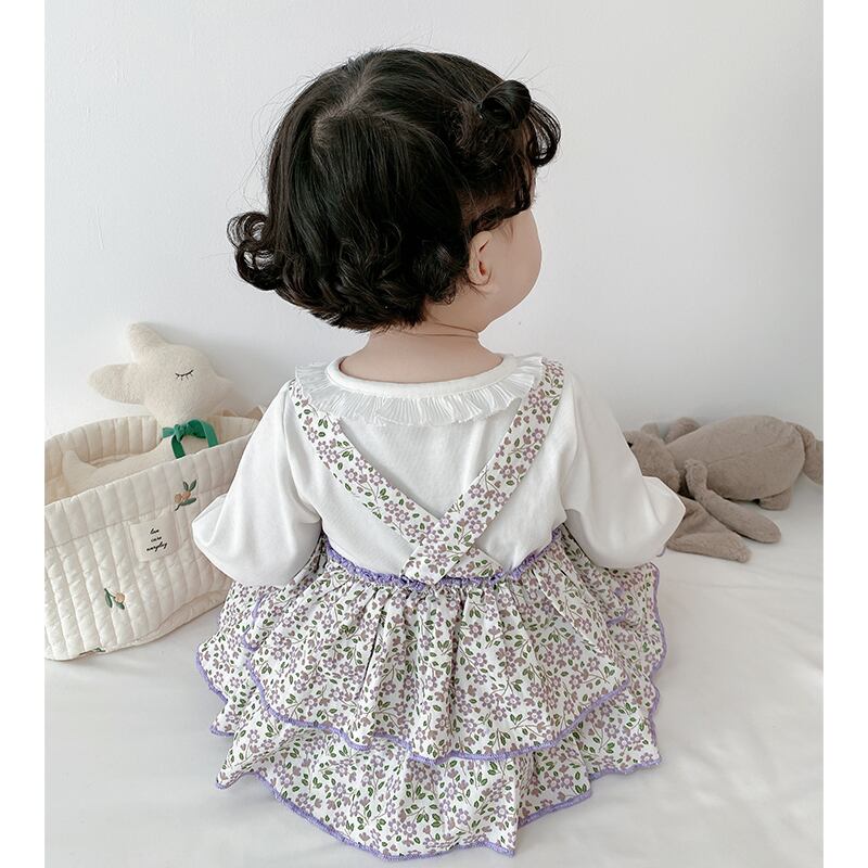 スプリングトライアングルロンパース オールインワン フローラルプリーツスカート スタイルワンピース ロング 春物 花柄 超面白いベビーショップ89437854309