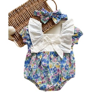 サマーロンパース オールインワン 薄手フローラルリボンジャンプスーツ オールインワン 夏物 花柄 超面白いベビーショップ14220583910