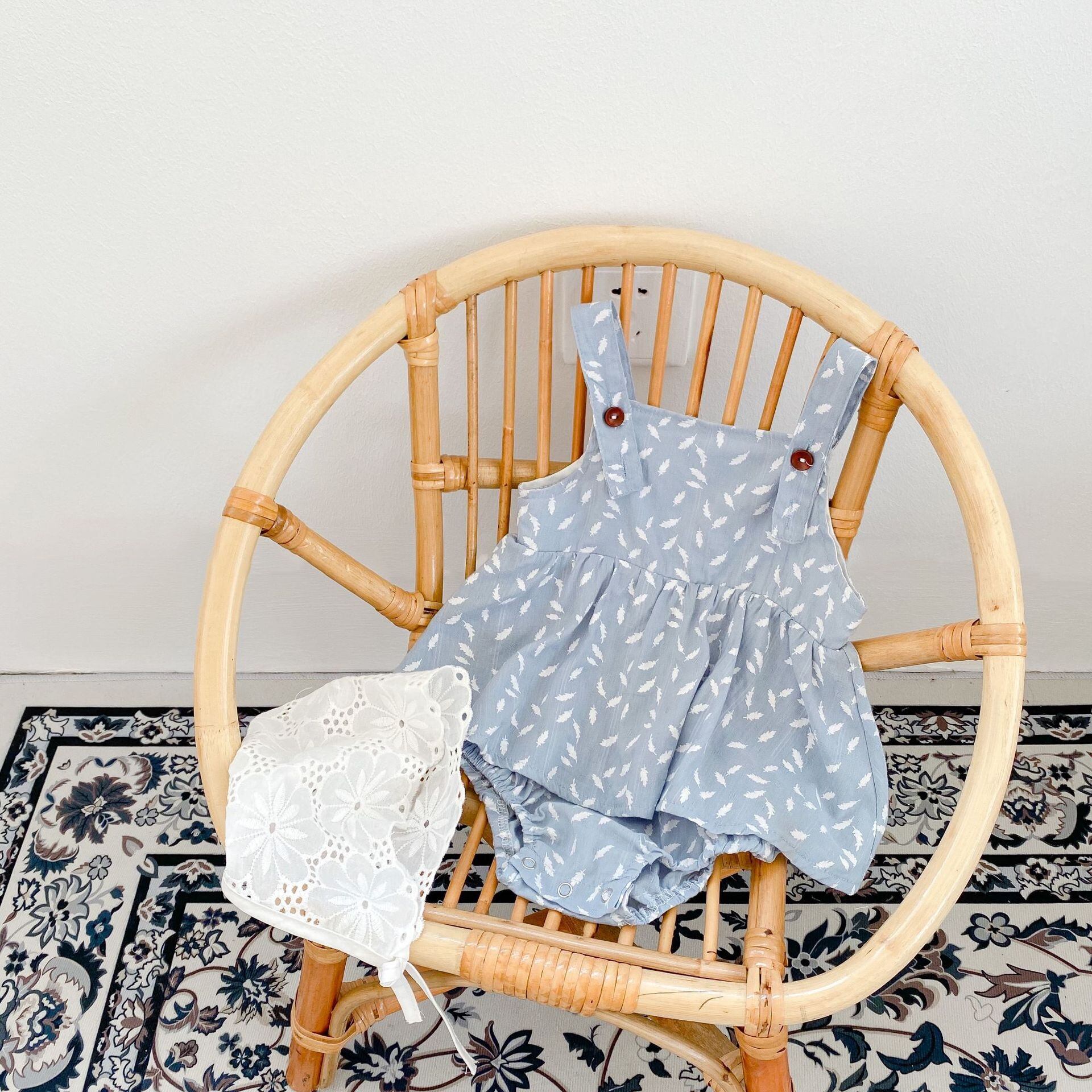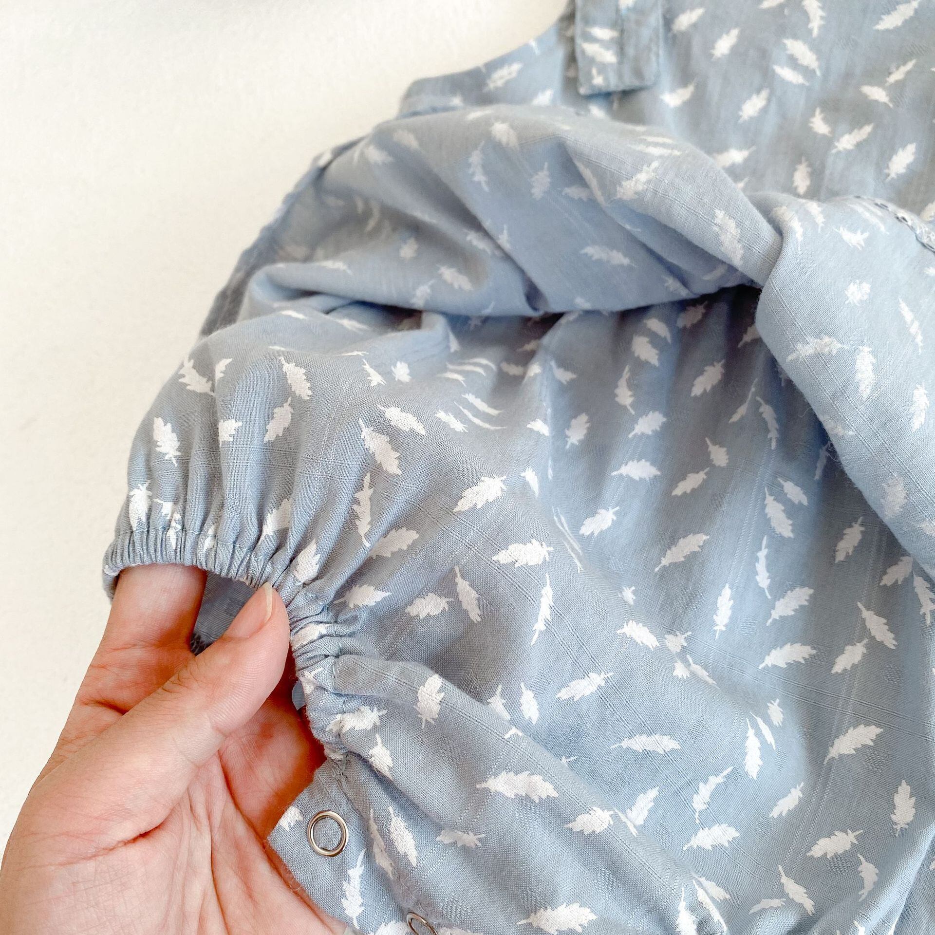 色:グレーとブルーのクールなロンパース