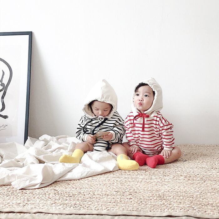 スプリングストライプジャンプスーツ オールインワン レディースカジュアルルーズフードロンパース オールインワン セーター 春物 超面白いベビーショップ69319351629