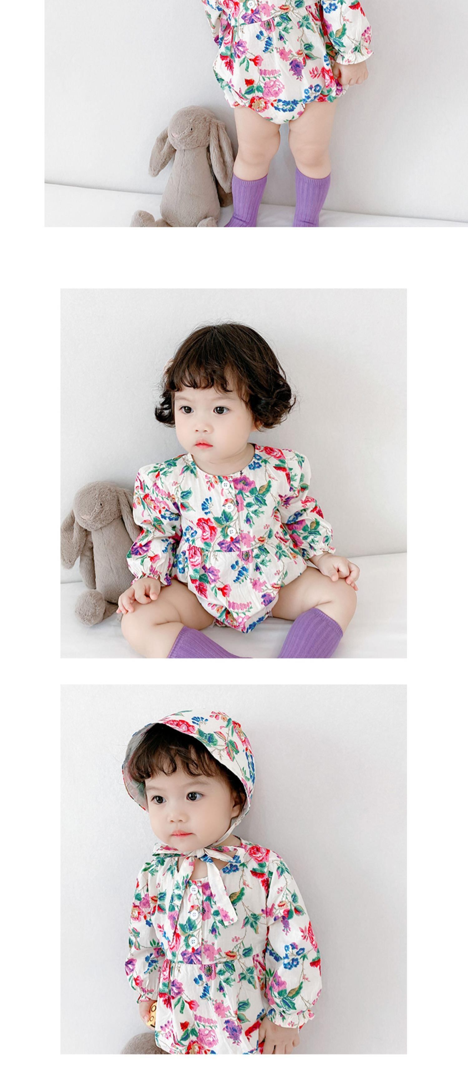 スプリングラウンドネックフローラルロンパース オールインワン ワンピースキャップ ロング コットン 春物 花柄 Oネック 超面白いベビーショップ55744524139