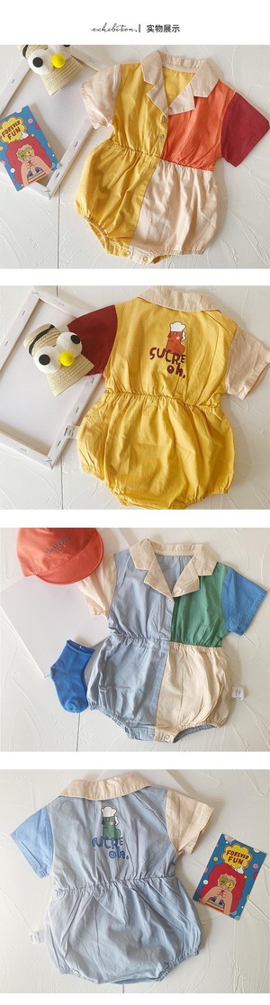 ワンピースロンパース オールインワン サマーショートカラースタイル 夏物 超面白いベビーショップ37691128734