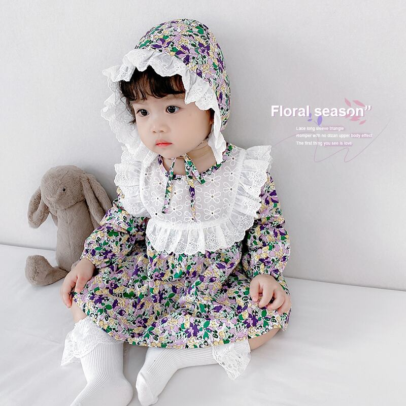 オータムフローラルワンピーストライアングルロンパース オールインワン ロング 秋物 花柄 超面白いベビーショップ69513399442