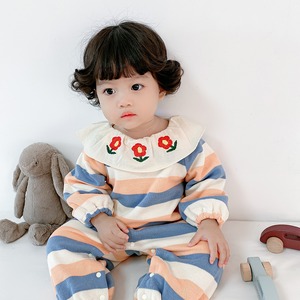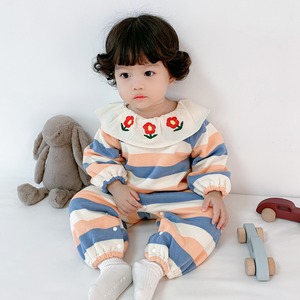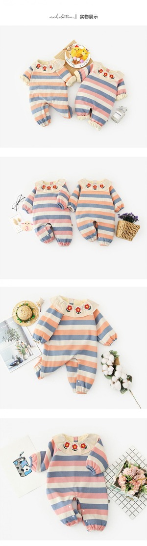ウィンターレッドスタイルベルベットストライプワンピースロンパース オールインワン レースカラープルオーバー ロング 長袖 冬物 超面白いベビーショップ6792286158