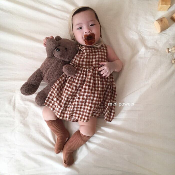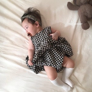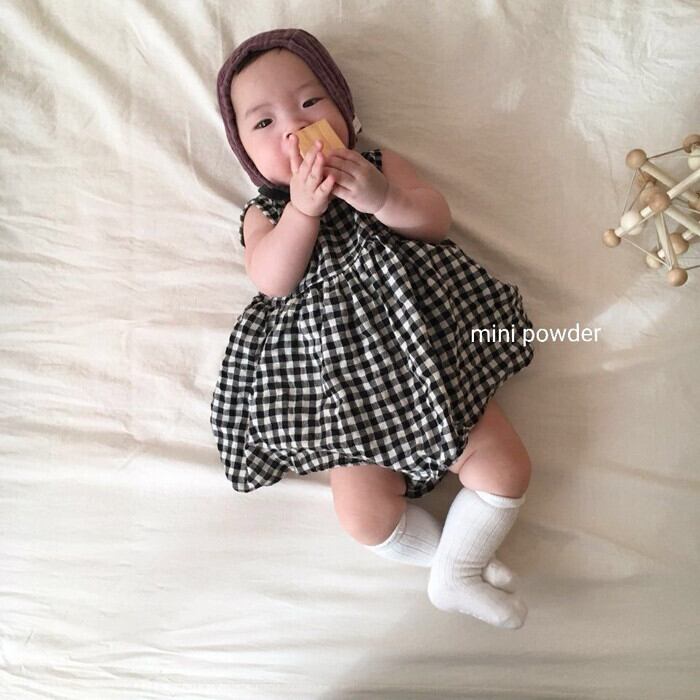 サマーノースリーブワンピース格子柄ロンパース オールインワン スカート コットン 夏物 超面白いベビーショップ80299291016
