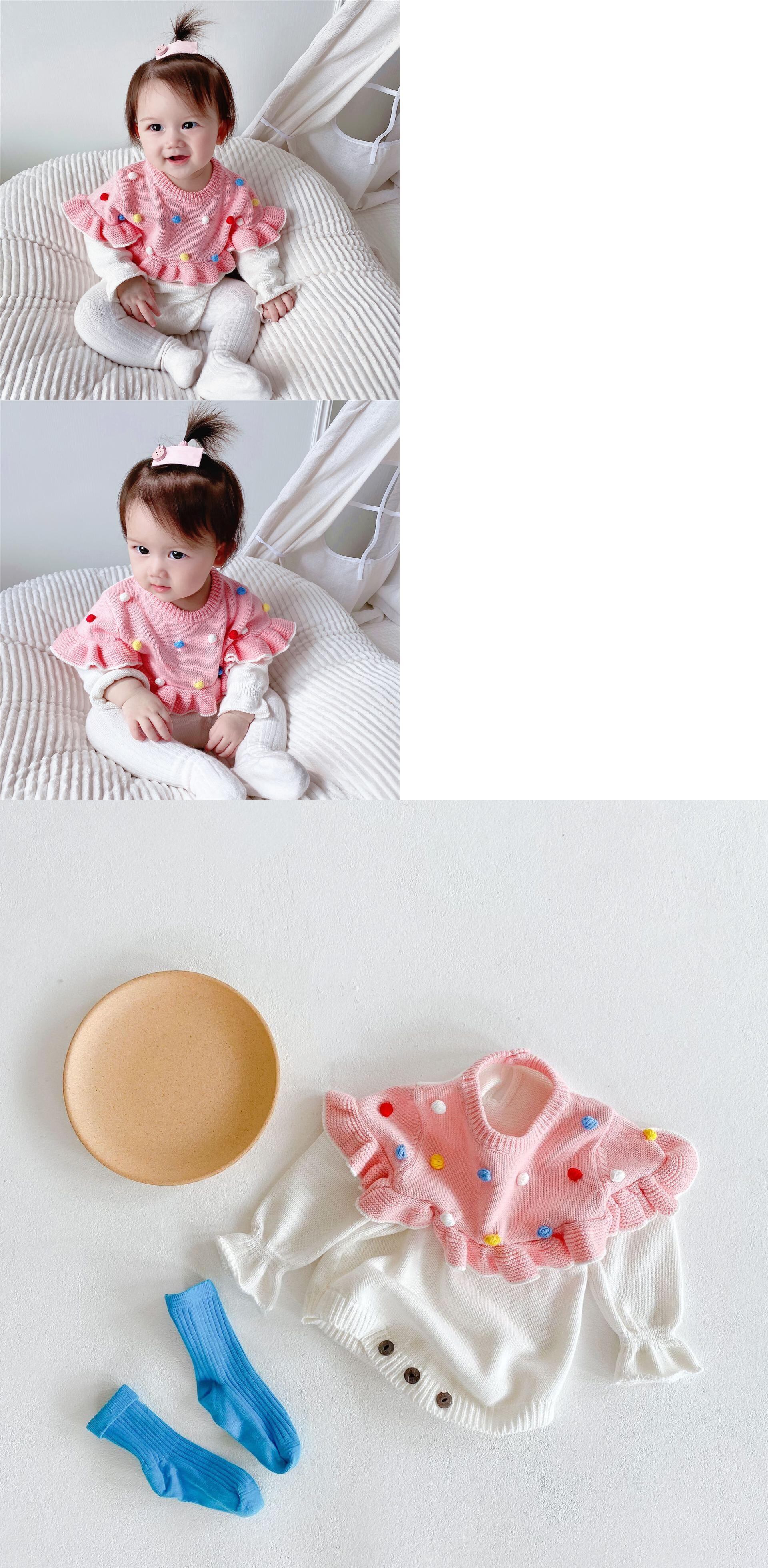 スプリングオータムカラーウールワンピーストライアングルロンパース オールインワン レッド 春物 秋物 超面白いベビーショップ14970332110