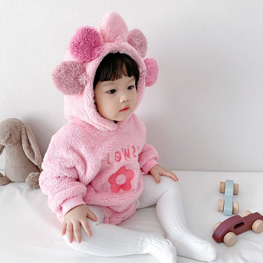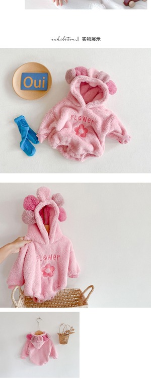 ウィンターワンピースFlowerデザイン 刺繍ロンパース オールインワン ロング 冬物 フラワーデザイン 超面白いベビーショップ44435618653