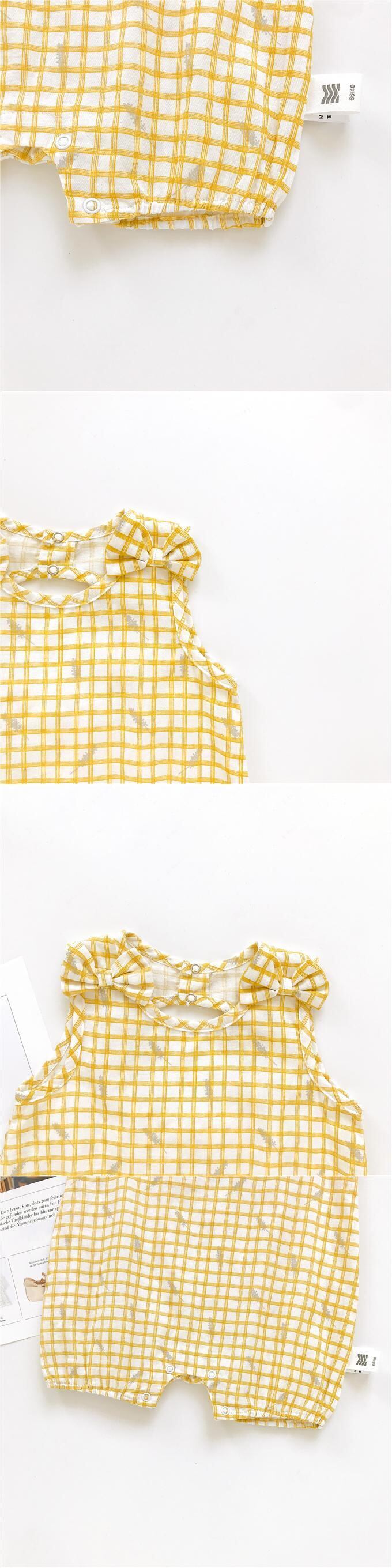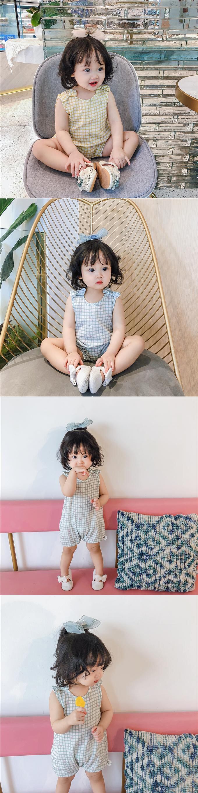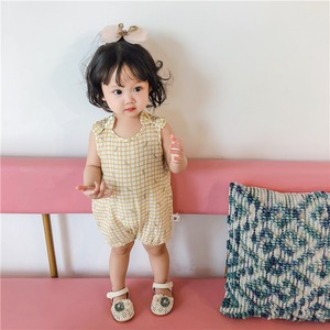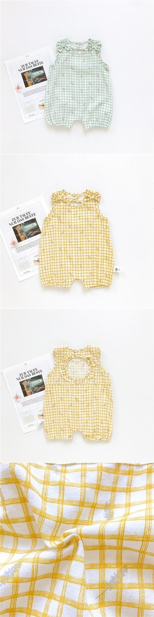 サマー薄手ワンピーススタイルノースリーブ格子柄ロンパース オールインワン バック リボン 夏物 超面白いベビーショップ27003342468