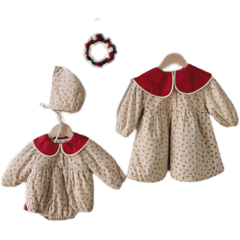 ウィンターフローラルドレス スタンダードスカート ロンパース オールインワン レトロ 冬物 花柄 超面白いベビーショップ22579776390