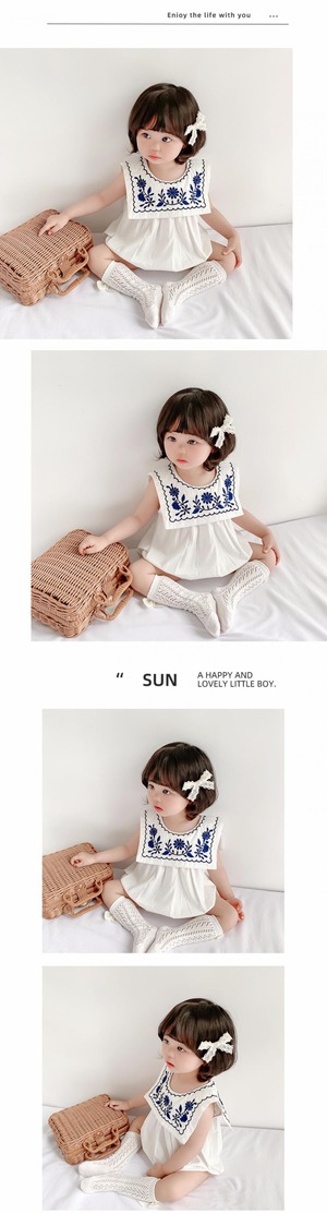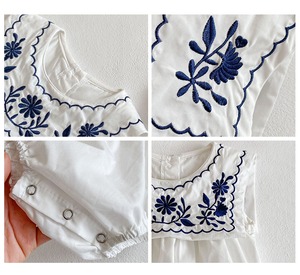 サマーネイビーカラーノースリーブロンパース オールインワン ワンピース レッド 刺繍 夏物 ピュア 超面白いベビーショップ33163546577