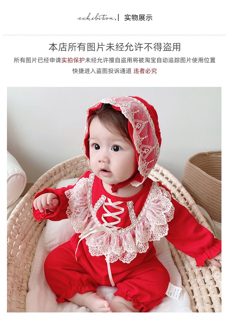 スプリングオータムレッドロンパース オールインワン スタイルワンピース レース 春物 秋物 超面白いベビーショップ98402829716