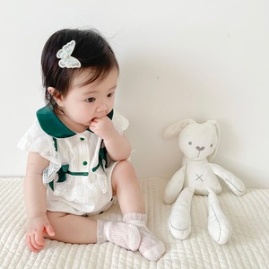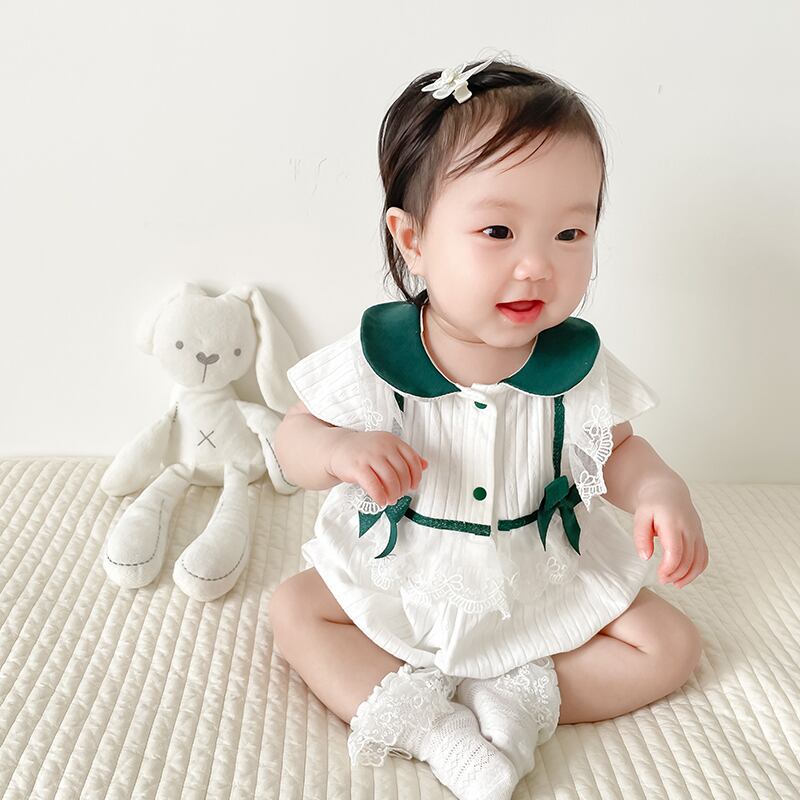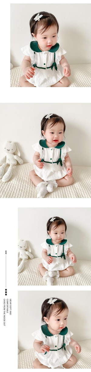 サマー薄手ワンピースグリーントライアングルロンパース オールインワン リボン 夏物 超面白いベビーショップ34153740962