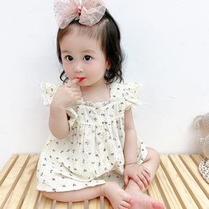 サマーパンツ フローラルレーススリーブトップス 夏物 花柄 超面白いベビーショップ97816810949