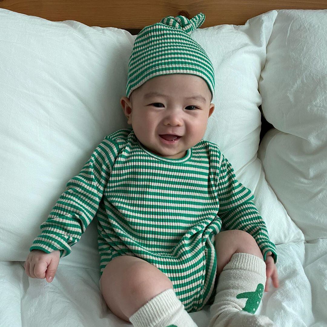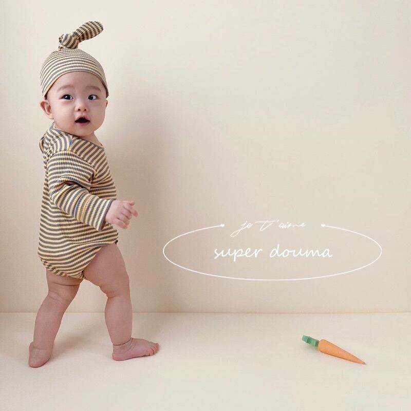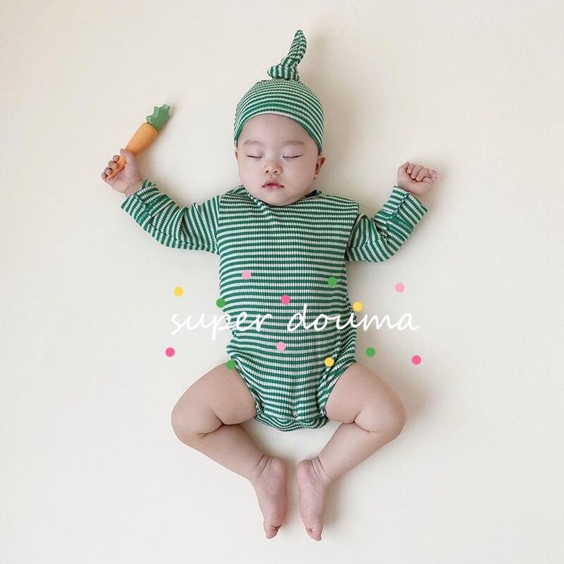 スプリングサマージャンプスーツ オールインワン ロンパース オールインワン ストライププルオーバー キャップ 春物 夏物 超面白いベビーショップ43133615982