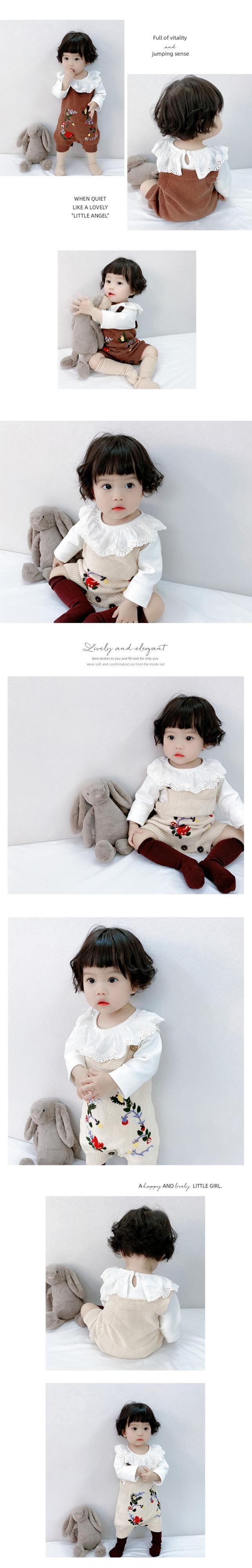 スプリングニットジャンプスーツ オールインワン ロンパース オールインワン レッド 刺繍 春物 超面白いベビーショップ92028101682