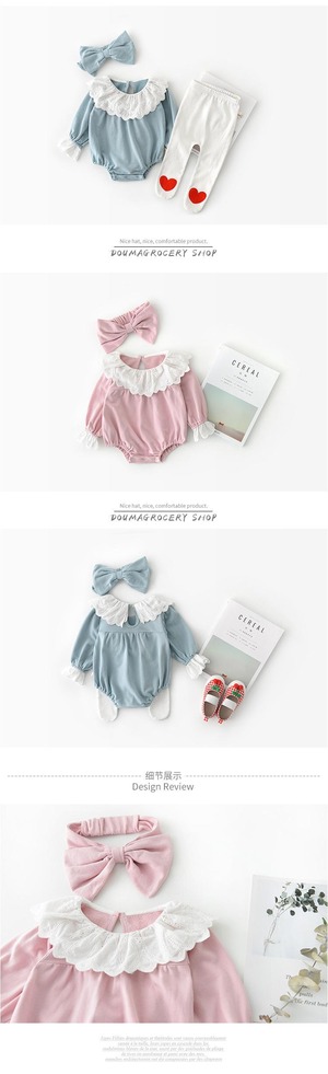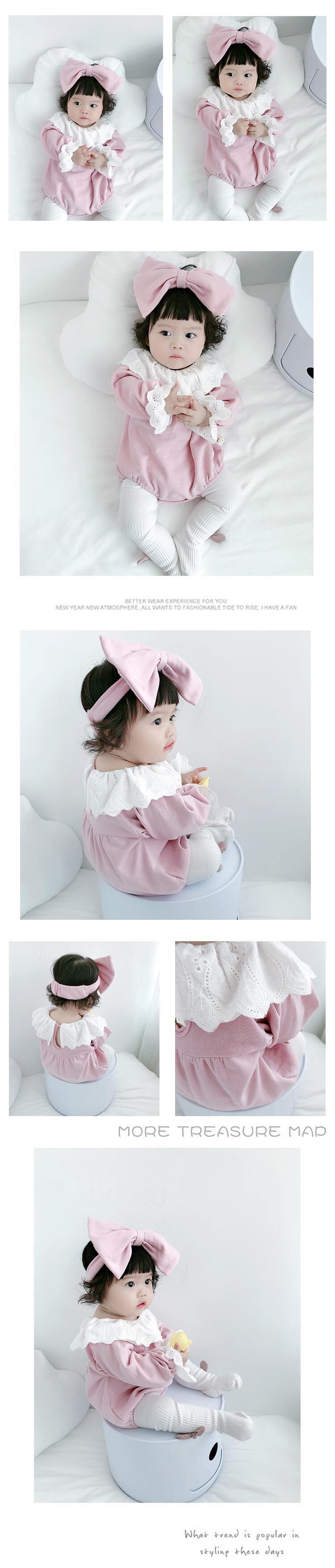 スプリングオータムロンパース オールインワン レースカラーリボンヘアバンド スタイル 大人ガーリー スウィート キュート カジュアル 春物 秋物 ヘアアクセサリー 超面白いベビーショップ45418923735