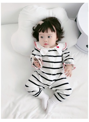 スプリングオータムストライプネイビースタイル長袖スリーブロンパース オールインワン ロング 春物 秋物 超面白いベビーショップ7679590242