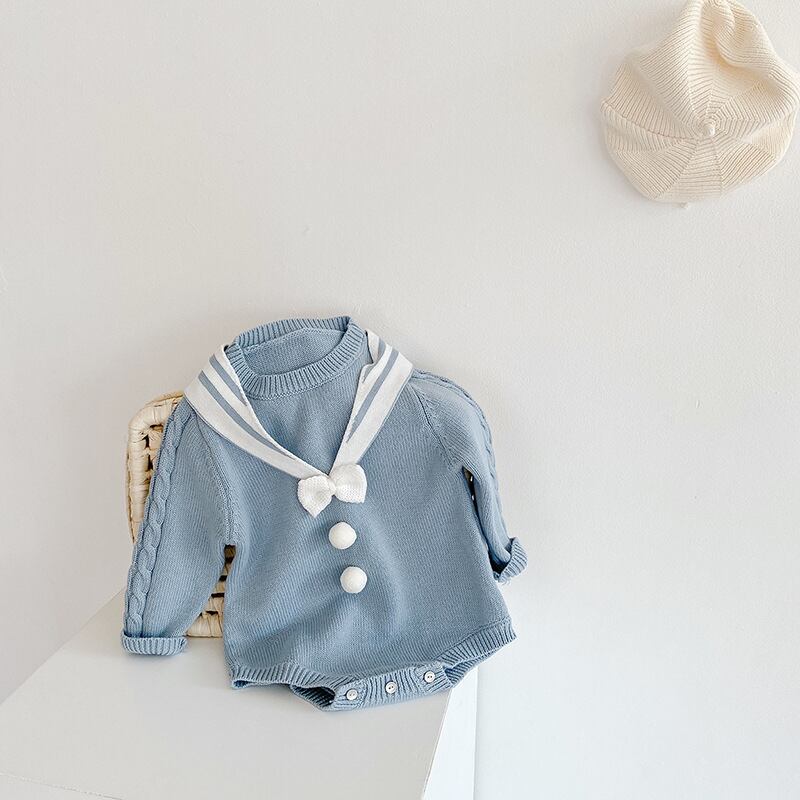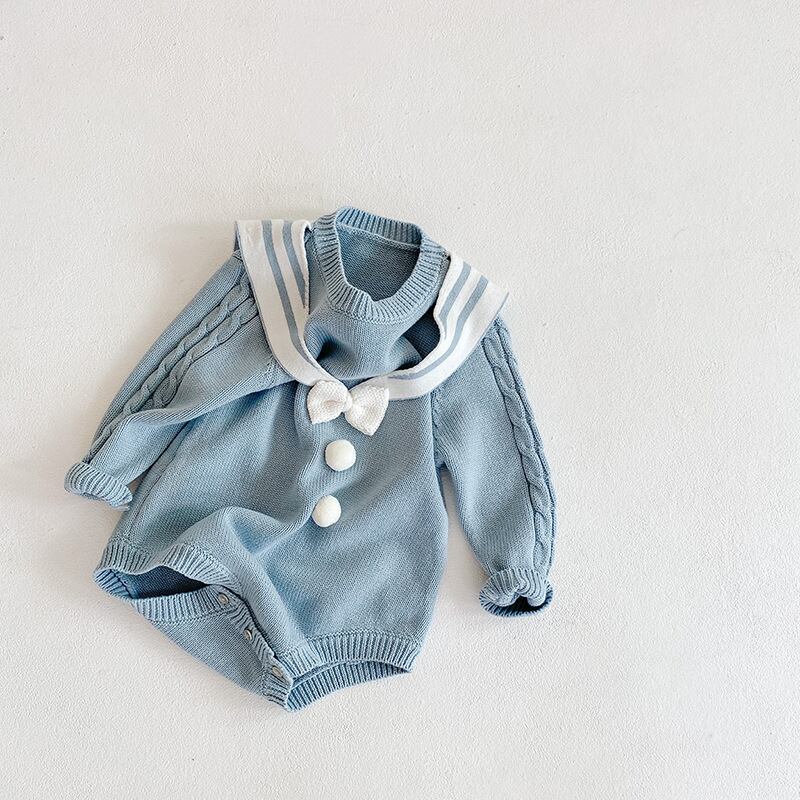 スプリングオータムネイビーカラーリボンジャンプスーツ オールインワン ロンパース オールインワン トライアングル 春物 秋物 超面白いベビーショップ910258596