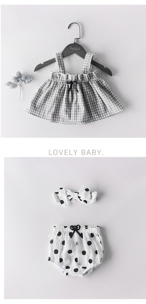 サマー格子柄ノースリーブトップス パンツ ヘアバンド 夏物 ヘアアクセサリー 超面白いベビーショップ71347092906