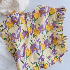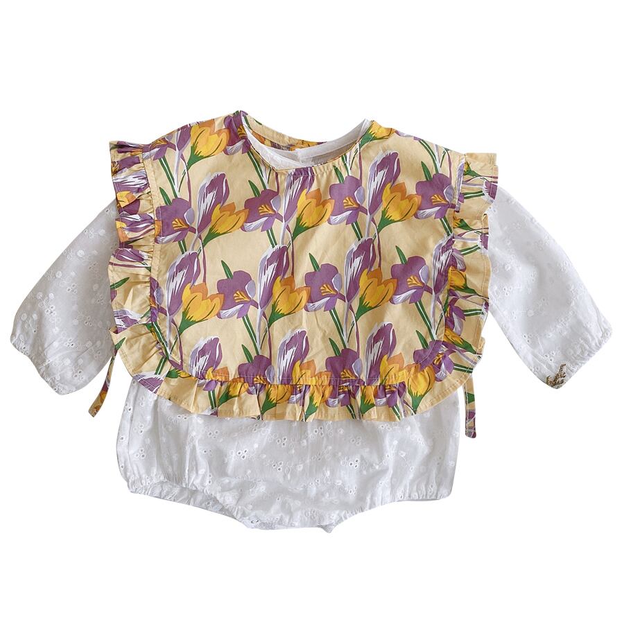 ワンピースオータムFlowerデザイン ブラウス スタイルロンパース オールインワン ロング コットン 秋物 フラワーデザイン パープル 超面白いベビーショップ40044094774
