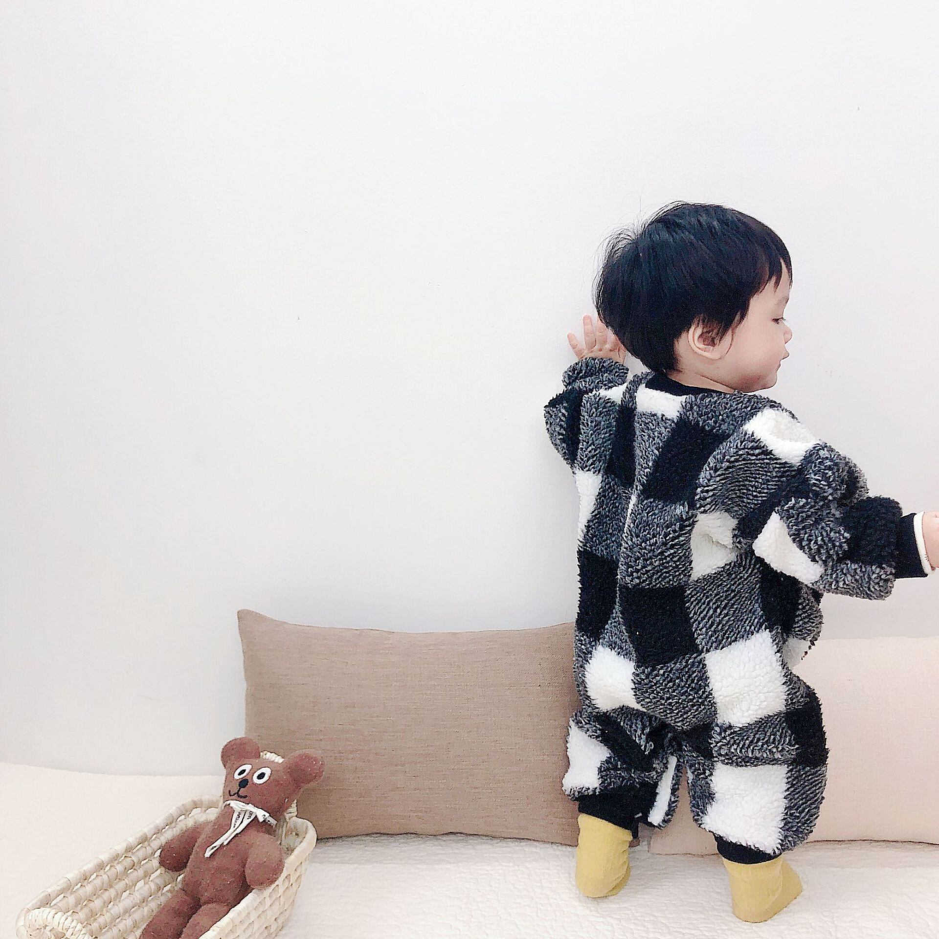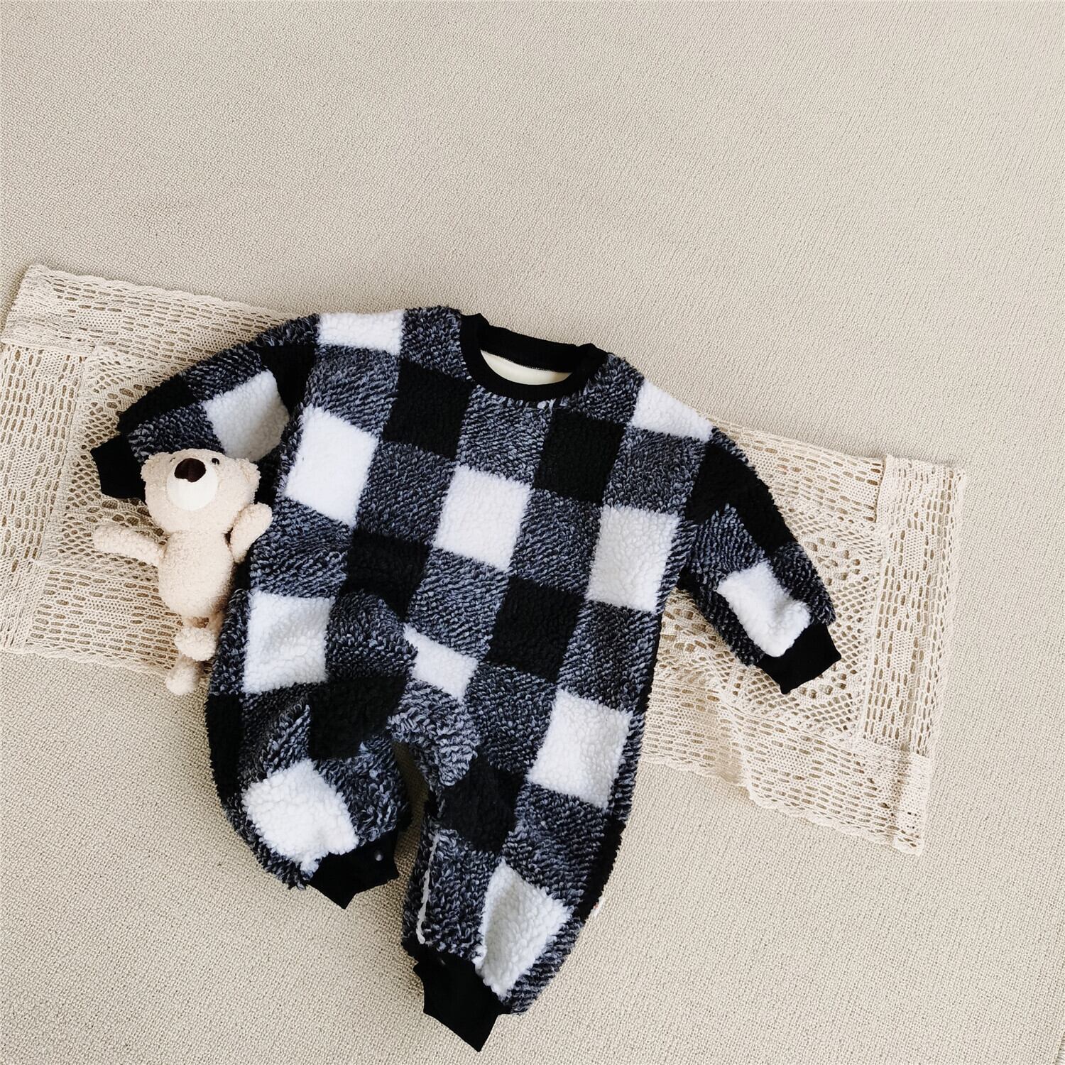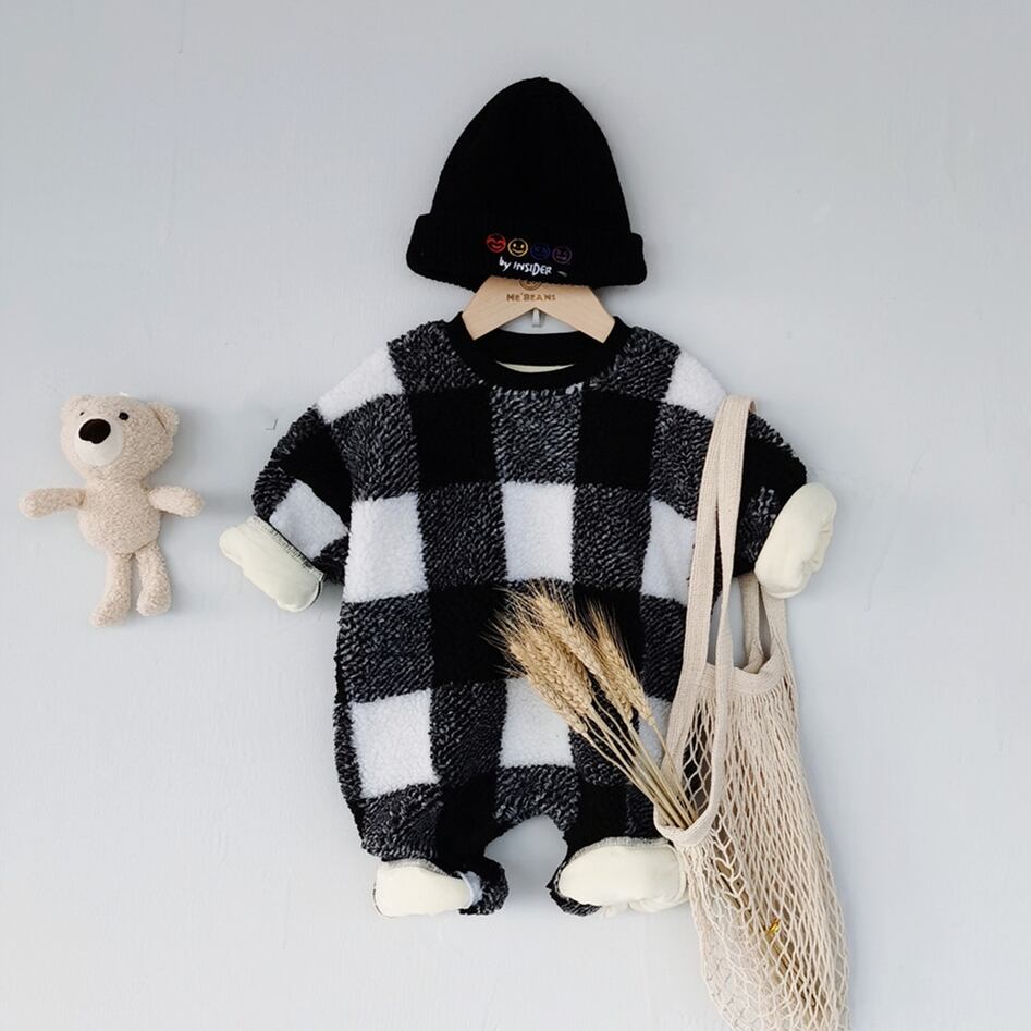ウィンター格子柄ロンパース オールインワン 冬物 超面白いベビーショップ48885092274