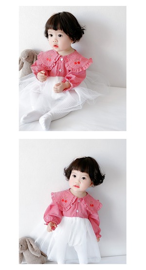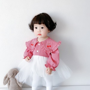 スプリング格子柄刺繍スカート ロンパース オールインワン 春物 超面白いベビーショップ62106060678