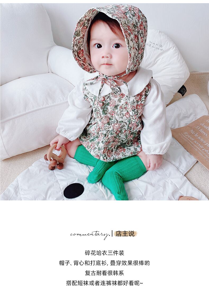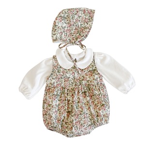 オータムワンピースフローラルノースリーブトライアングルロンパース オールインワン コート コットン 秋物 花柄 超面白いベビーショップ86563767165
