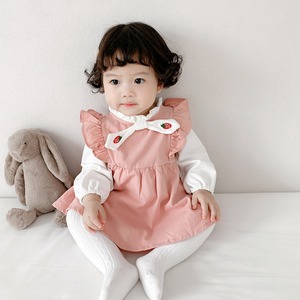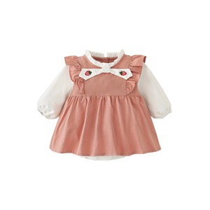 スプリングオータムワンピース長袖スリーブリボンロンパース オールインワン ロング レッド コットン 刺繍 大人ガーリー スウィート キュート カジュアル 春物 秋物 超面白いベビーショップ68994524616