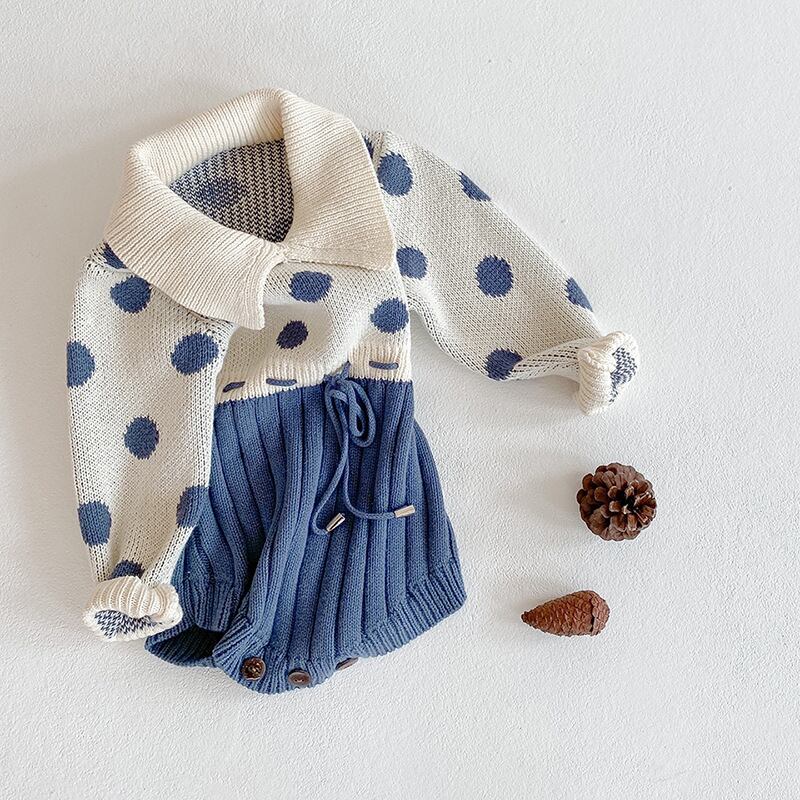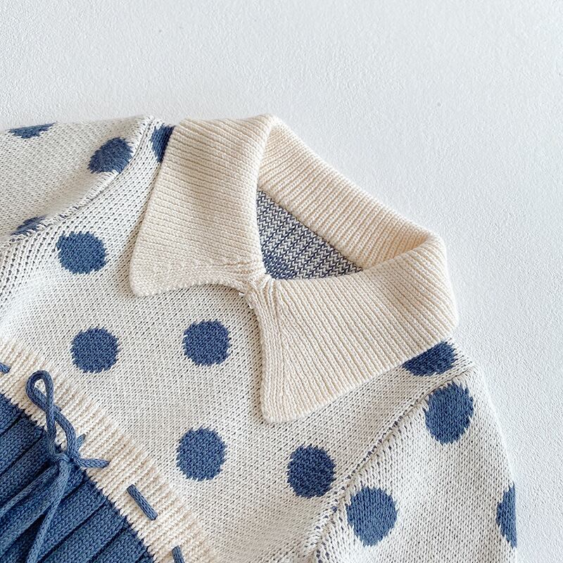 スプリングオータムロング水玉スリーブワンピースロンパース オールインワン トライアングル コットン 春物 秋物 ステッチ 超面白いベビーショップ12331431737