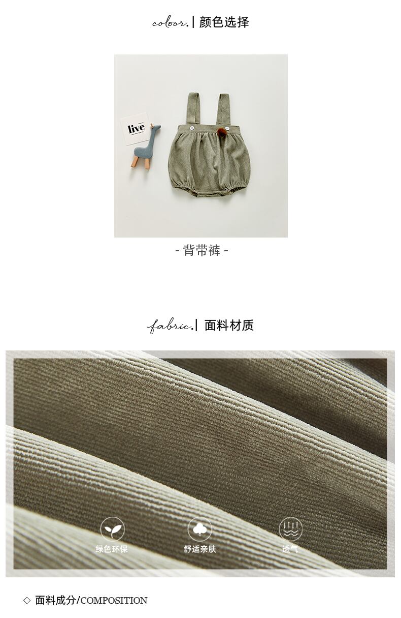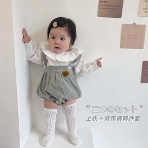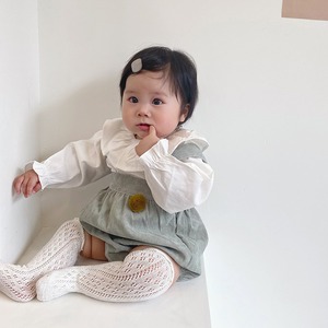 色:ホワイトフリルトップ,緑のオーバーオール