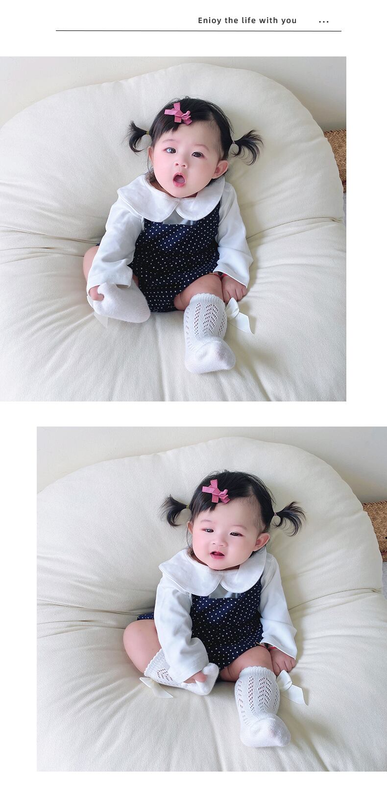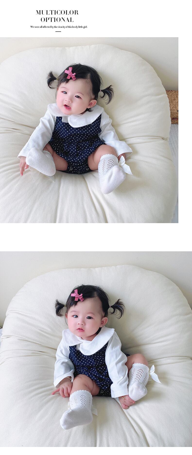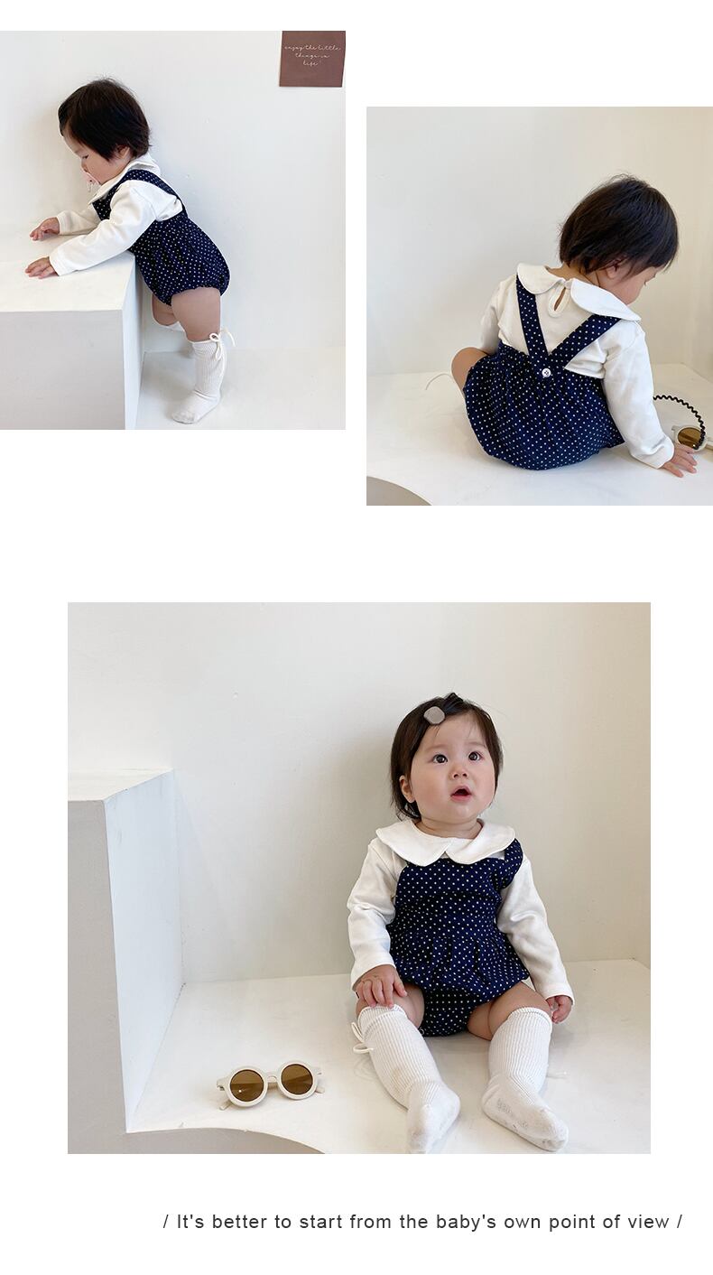 色:ネイビーブルーの水玉ボディスーツ,ピュアホワイトT,波点T