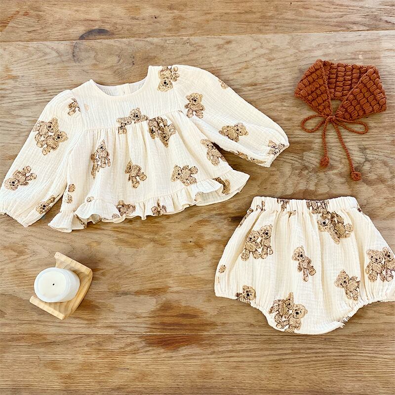 色:ベアトライアングルロンパース,クマセット,コーヒー色のカーディガン