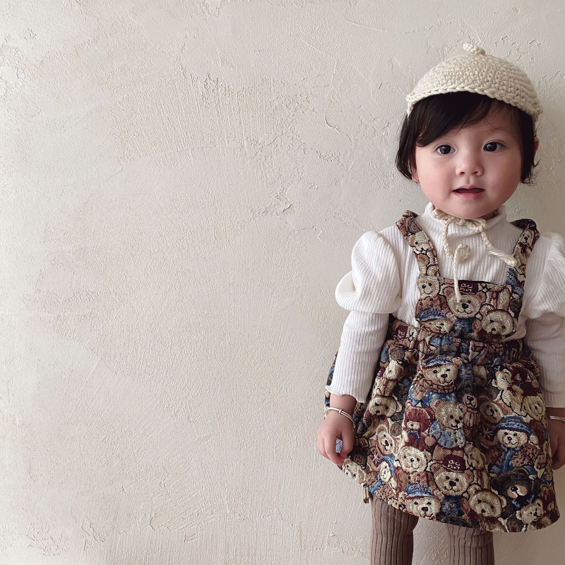 色:ホワイトパフスリーブボトミングシャツ,ベアサスペンダースカート,黒猫サスペンダースカート,ベースシャツ+ベアスカート,ベースシャツ+黒猫グループ