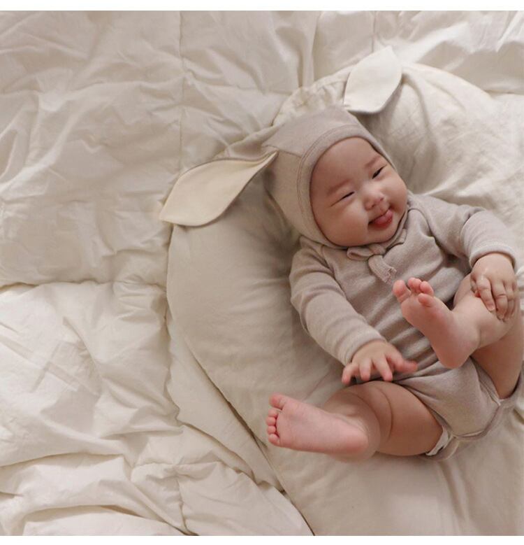 色:オフホワイトのロンパース+パンツ+帽子,コーヒーロンパース+パンツ+帽子,ライトグレーのロンパース+パンツ+帽子,ダークグレーのロンパース+パンツ+帽子,カーキドレス+パンツ+帽子