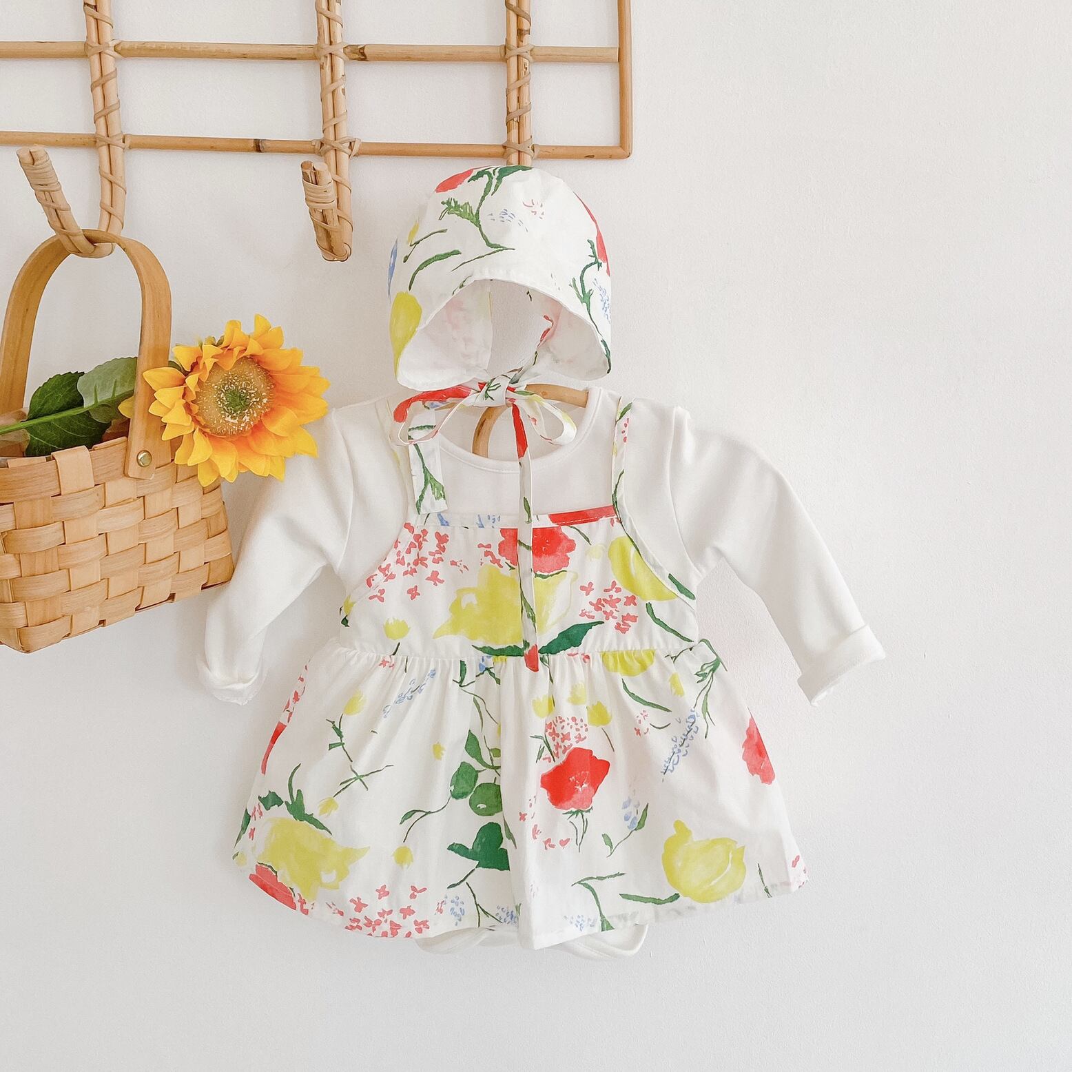 スプリングレッドプリント柄スカート ワンピースロンパース オールインワン ロング コットン 春物 超面白いベビーショップ78505888784