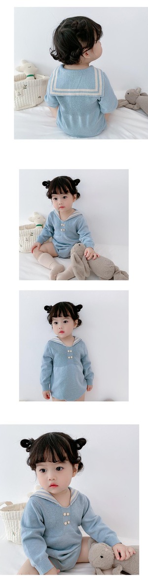 スプリングサマーネイビーニットカラートライアングルスタイルロンパース オールインワン 春物 夏物 超面白いベビーショップ40072598969