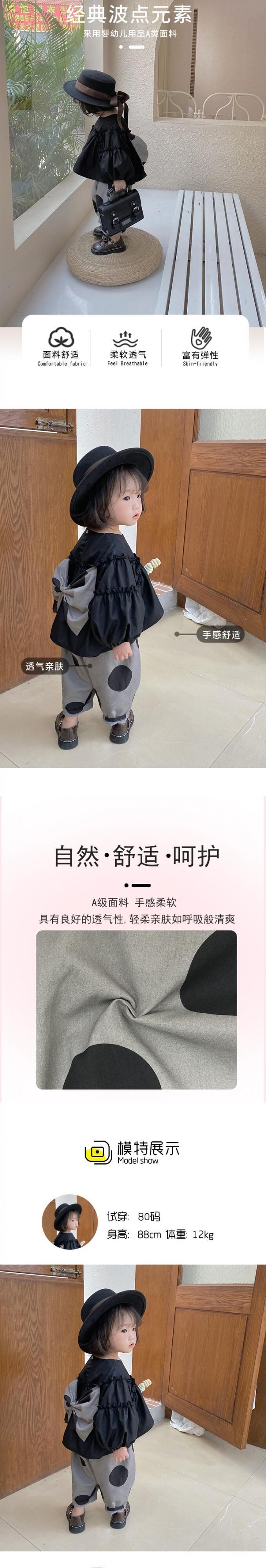 色:グレートップ,水玉パンツ,トップス+パンツ一式