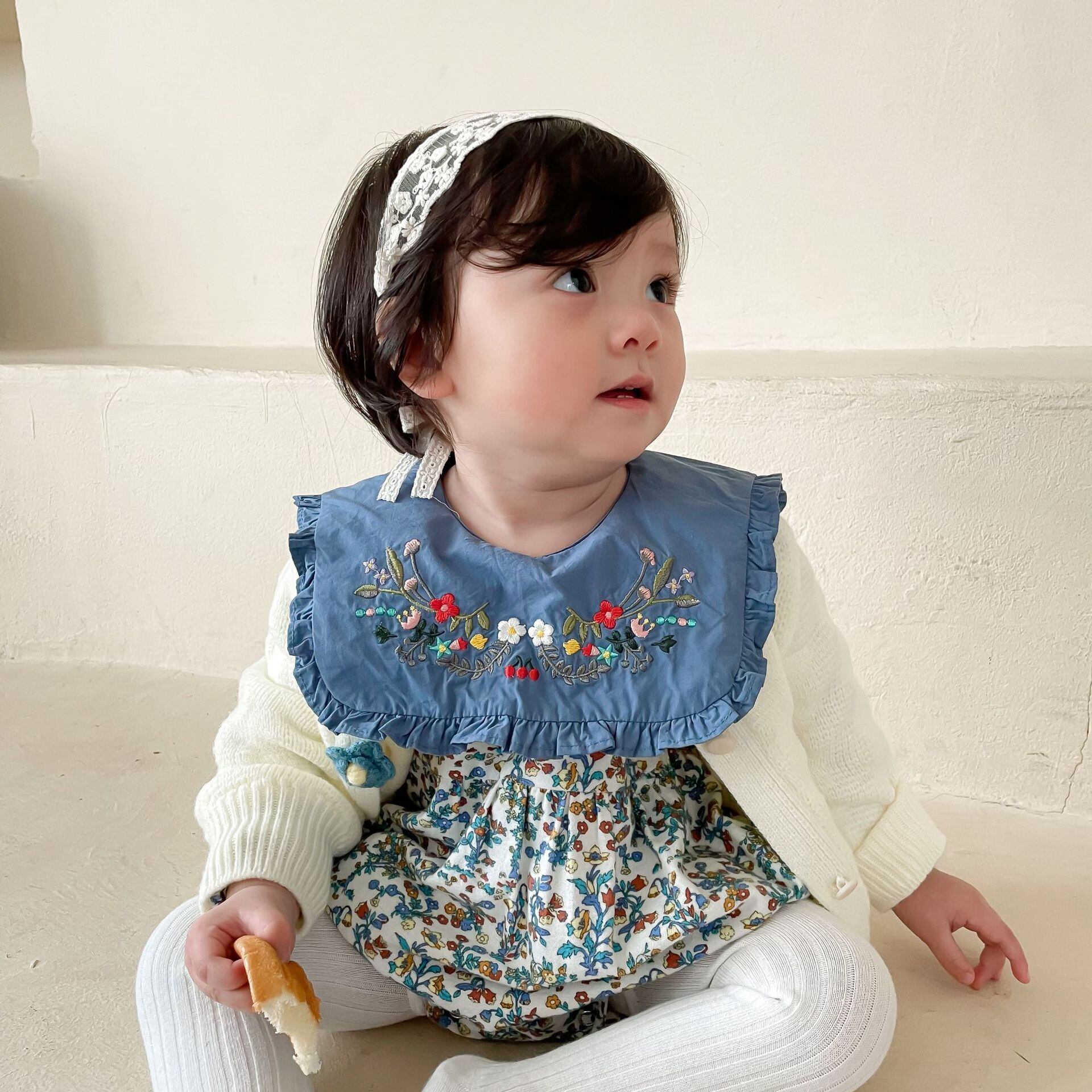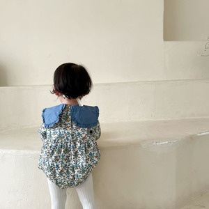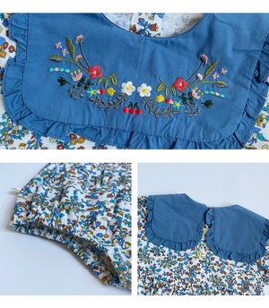 色:ブルーフローラルロンパース,白いカーディガン