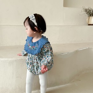 オータムロンパース オールインワン フローラル長袖スリーブスタンダード ロング レッド レトロ 刺繍 秋物 花柄 超面白いベビーショップ82712876623