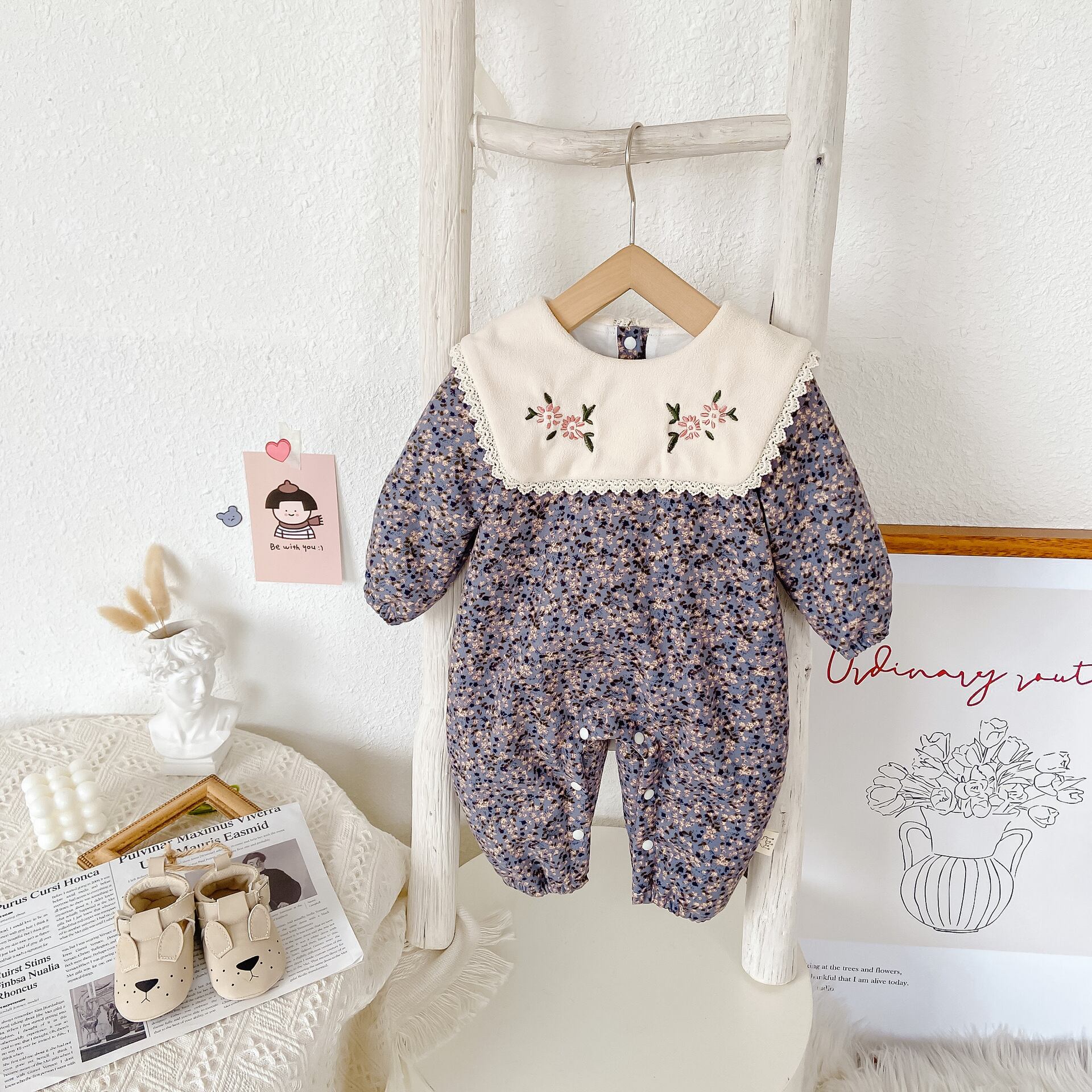 ウィンターベルベットワンピーススタンダードフローラルロンパース オールインワン コットン レトロ 冬物 花柄 超面白いベビーショップ34981473562