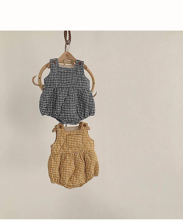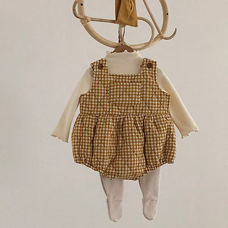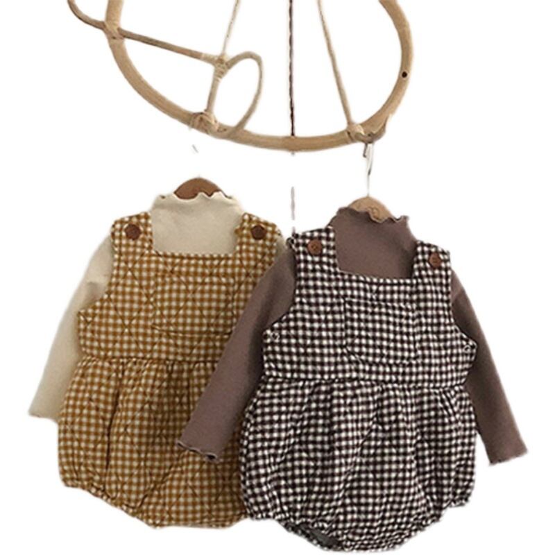 オータム格子柄ジャンプスーツ オールインワン トライアングルロンパース オールインワン 秋物 超面白いベビーショップ66148496814